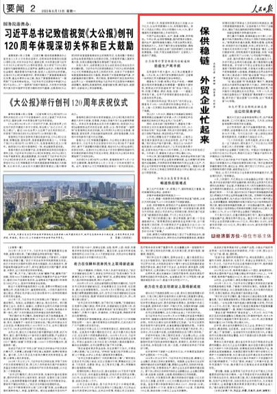 人民日?qǐng)?bào):保供穩(wěn)鏈 外貿(mào)企業(yè)忙起來(lái)