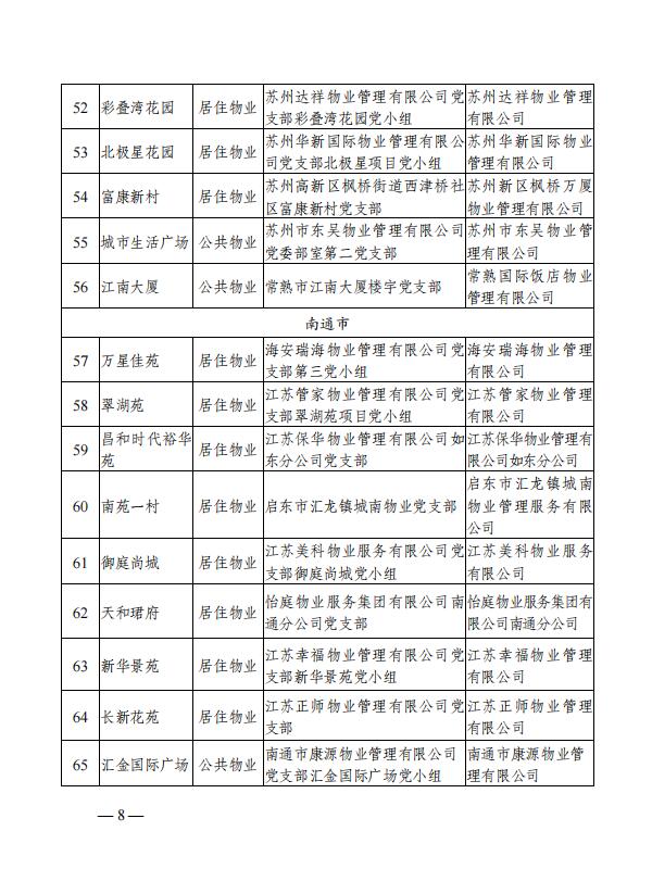 江蘇發(fā)布2021年黨建引領(lǐng)物業(yè)管理服務(wù)工作省級(jí)示范點(diǎn)名單