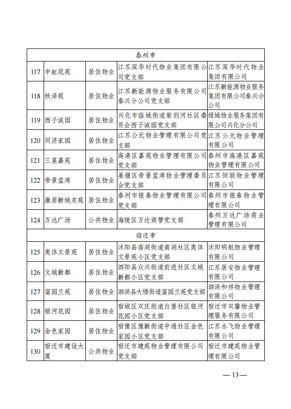 6月7日,江蘇省委組織部、江蘇省委非公有制企業(yè)和社會(huì)組織工作委員會(huì)、江蘇省住房和城鄉(xiāng)建設(shè)廳黨組、江蘇省住房和城鄉(xiāng)建設(shè)行業(yè)委員會(huì)聯(lián)合發(fā)出通知,決定命名130個(gè)項(xiàng)目為江蘇《2021年黨建引領(lǐng)物業(yè)管理服務(wù)工作省級(jí)示范點(diǎn)》,這是江蘇省2021年第一批命名100個(gè)黨建引領(lǐng)物業(yè)管理服務(wù)工作省級(jí)示范點(diǎn)之后,再次發(fā)布的示范點(diǎn)名單。