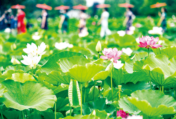 進入六月,荷花蕩里上百個品種的荷花次第盛開,吸引了眾多游客和攝影愛好者為“荷”而來,賞荷拍照,打卡留念。