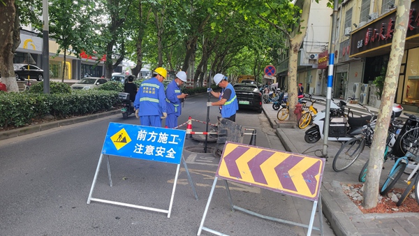 工作人員進(jìn)行管網(wǎng)養(yǎng)護(hù)與疏通。秦淮區(qū)水務(wù)局供圖
