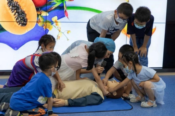 本次講座除了關(guān)于兒童鼾癥的內(nèi)容外,醫(yī)護(hù)人員還為現(xiàn)場的小朋友和家長們進(jìn)行了急救基礎(chǔ)知識(shí)培訓(xùn)。據(jù)介紹,學(xué)習(xí)急救知識(shí),不僅僅是為家庭急救等生活場景做準(zhǔn)備,更是為了培養(yǎng)兒童的醫(yī)學(xué)素養(yǎng),增強(qiáng)孩子及家長應(yīng)對(duì)生活中突發(fā)事件的能力。
