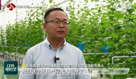 宿遷市宿豫區(qū)京東農業(yè)科技示范園項目負責人張高喜說:“我們這個項目產量大大提升了,西紅柿畝產可以達到五萬斤,是我們傳統(tǒng)種植的3到5倍?!?/p>