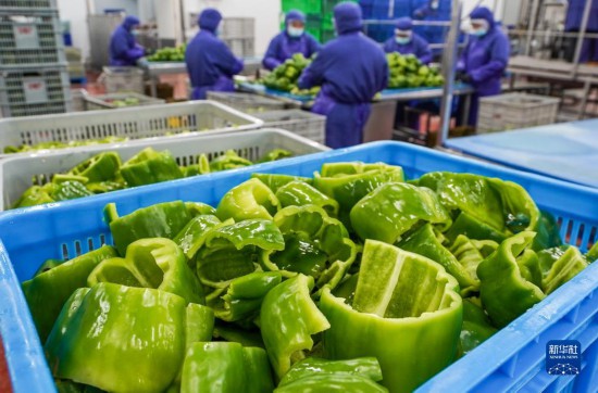 7月26日,工人在海門現(xiàn)代農業(yè)產業(yè)示范園內一家蔬菜加工公司生產線上工作。