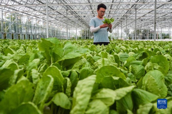 7月26日,在海門(mén)現(xiàn)代農(nóng)業(yè)產(chǎn)業(yè)示范園蔬菜水培一體化示范基地,農(nóng)業(yè)技術(shù)人員檢查蔬菜生長(zhǎng)情況。