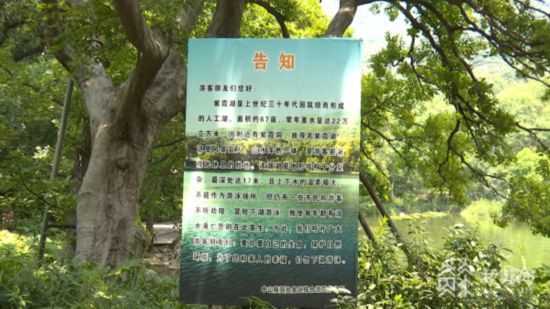 剛剛發(fā)生了溺水事故,湖邊很多地方也張貼了禁止游泳的警示標語,中山陵園風景區(qū)綜合治理辦公室還豎了一份告知牌,牌上注明紫霞湖底地形結(jié)構(gòu)復(fù)雜,最深處達 17 米,且上下水的溫差極大,不能作為游泳場所,違者后果自負??珊芏嗳藢Υ诉€是不以為然。