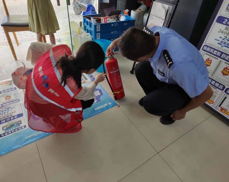 圖為網(wǎng)格員和社區(qū)民警排查商戶消防安全隱患。 南街社區(qū)供圖