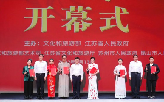 省委常委、宣傳部部長(zhǎng)張愛(ài)軍主持開(kāi)幕式。省委常委、蘇州市委書記曹路寶,副省長(zhǎng)馬欣,省政協(xié)副主席姚曉東為2021年、2022年全國(guó)戲曲表演領(lǐng)軍人才培養(yǎng)計(jì)劃入選人員代表頒發(fā)證書。文化和旅游部藝術(shù)司司長(zhǎng)明文軍,江蘇省文化和旅游廳黨組書記、廳長(zhǎng)楊志純,蘇州市委副書記、市長(zhǎng)吳慶文,昆山市委書記周偉共同為“天下第一團(tuán)”青年表演人才培訓(xùn)班揭牌。