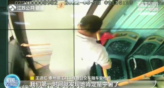 泰州靖江211線路公交車隨車安檢員王進(jìn)紅說(shuō):“我們第一時(shí)間就發(fā)現(xiàn)她肯定是中暑了,有點(diǎn)昏迷的狀態(tài),因?yàn)槲覀児卉嚿鲜怯锌照{(diào)的,這個(gè)天氣這么熱,中暑的人一涼快馬上會(huì)好轉(zhuǎn)的,就趕快把她扶到車上來(lái)了。喝了水以后到車上涼快了三分鐘左右,女子有點(diǎn)能說(shuō)話了,就問她住哪里,怎么樣,她還是不知道,不清醒的?!?/p>
