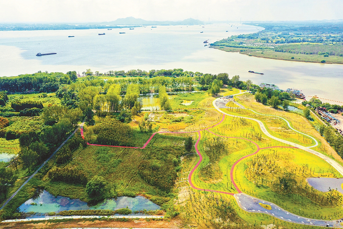 江蘇是全國(guó)擁有長(zhǎng)江岸線最長(zhǎng)的省份。長(zhǎng)江兩岸,從過去的“煙囪聳入云”,悄然變身“無邊江景一時(shí)新”。在張家港,生態(tài)修復(fù)讓雙山島成為旅游勝地,這里蘆花搖曳,群鳥翩飛;在江陰,昔日汽渡碼頭變身韭菜港公園,騰出的生產(chǎn)岸線全部用于生態(tài)修復(fù);在揚(yáng)州市廣陵區(qū)三江營(yíng)省級(jí)濕地公園,千里江堤成為綠色長(zhǎng)廊。
