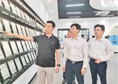 江蘇省蘇州市副市長、農工黨蘇州市委主委張橋(左二)一行來到吳江區(qū)蘇州博古特智造有限公司走訪調研,了解企業(yè)創(chuàng)新研發(fā)、數(shù)字化改造等情況。王偉健 吳 桐攝影報道