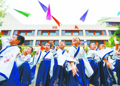 昨日,軟件谷小學(xué)為一年級新生舉辦了別開生面的開學(xué)儀式,孩子們興奮地拋擲親手疊制的紙飛機,憧憬新征程。 南京日報/紫金山新聞記者 孫中元 攝
