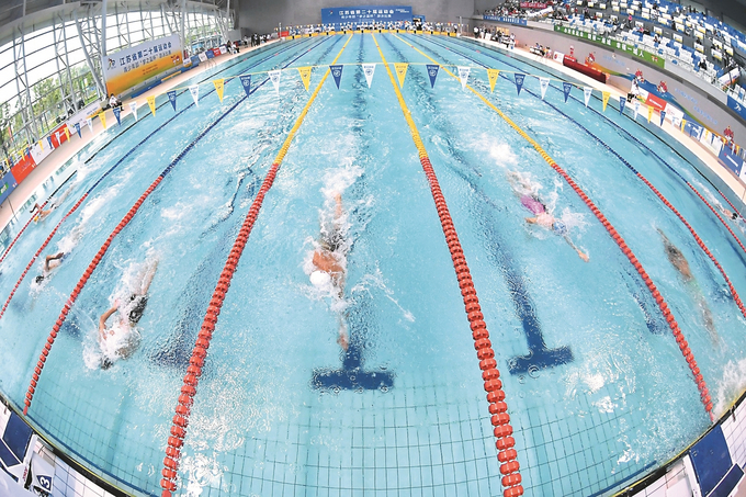 1日,江蘇省第二十屆運動會青少年部游泳比賽在泰州圓滿收官。3個組別共產生88枚金牌,吸引全省13市的685名運動員參加。 本報記者 萬程鵬 攝