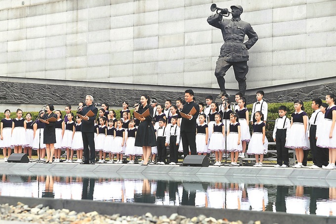紫金草藝術(shù)團童聲合唱團團員、南京秦淮區(qū)外國語學校學生王可馨說:“歌曲激勵著我們青少年蓬勃向上,我們要努力學習,把祖國建設得更加美好富強?!?/p>