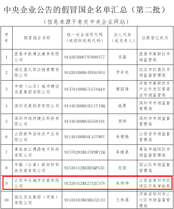 國資委公布第二批175家假冒中央企業(yè)名單 江蘇7家企業(yè)上榜