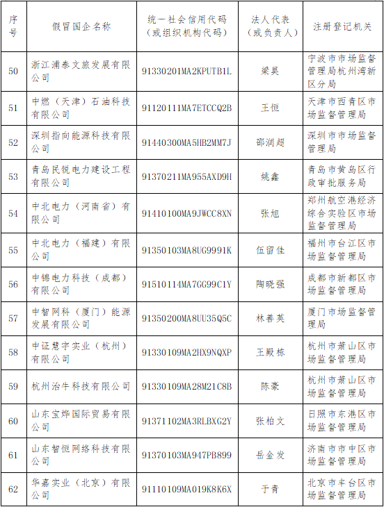 國資委表示,近期,部分中央企業(yè)對外公告了一批假冒國企名單,明確有關(guān)公司及其下設(shè)各級子公司均為假冒國企,與中央企業(yè)無任何隸屬或股權(quán)關(guān)系,也不存在任何投資、合作、業(yè)務(wù)等關(guān)系,其一切行為均與中央企業(yè)無關(guān)。請社會各界提高警惕,注意防范風(fēng)險,如發(fā)現(xiàn)其違法犯罪行為,請盡快到公安機(jī)關(guān)報案。
