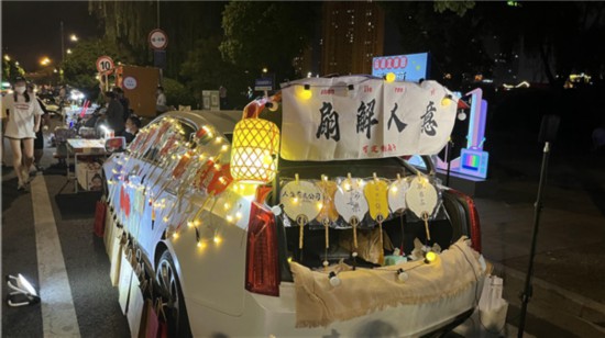 8月16日晚,微風(fēng)習(xí)習(xí)帶來(lái)舒爽愜意,崇川區(qū)運(yùn)河北岸路后備廂夜市拉開(kāi)帷幕?!斑\(yùn)河畔風(fēng)景優(yōu)美,路過(guò)這兒覺(jué)得有文創(chuàng)的感覺(jué),就產(chǎn)生了賣(mài)文創(chuàng)扇子的想法。”“扇解人意”攤主小七說(shuō),所有登記的夜市攤主有一個(gè)交流群,請(qǐng)假需要在群內(nèi)報(bào)備,每天打烊后都要收拾好衛(wèi)生包干區(qū)并在群里上傳照片、視頻。