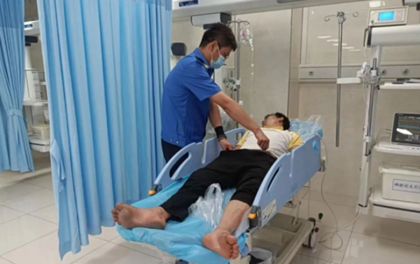 據了解,7月4日,該男子就曾到南通市第二人民醫(yī)院就醫(yī)。然后自行離開醫(yī)院。目前,該男子生命體征平穩(wěn)。7月5日上午,在完成手上的工作后,張黃誠還趕到醫(yī)院看望該名男子。