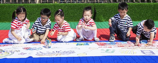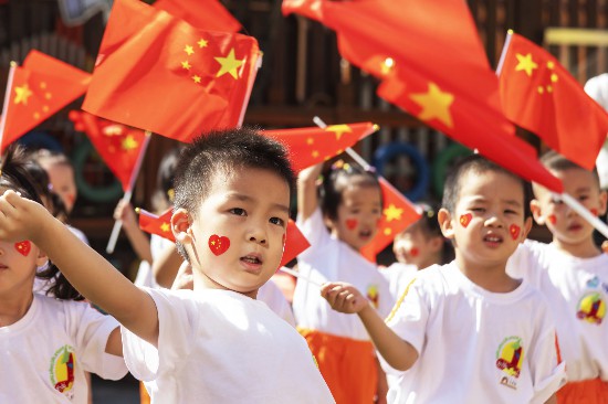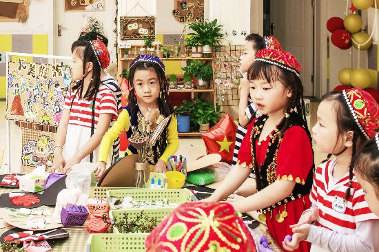 搭建蒙古包、學(xué)跳新疆舞、制作藏飾、頂甕大比拼……9月29日上午,揚(yáng)州市機(jī)關(guān)第三幼兒園大班民族博覽園活動(dòng)中,孩子們身著少數(shù)民族傳統(tǒng)服裝,通過一個(gè)個(gè)富有特色的活動(dòng)領(lǐng)略各民族傳統(tǒng)文化。中班的幼兒繪制十米長卷畫《我愛你中國》、拼搭火箭等方式表達(dá)對(duì)祖國母親的熱愛;剛?cè)雽W(xué)一個(gè)月的小班幼兒揮舞著國旗,用童謠、歌舞、律動(dòng)的方式向祖國媽媽獻(xiàn)禮。