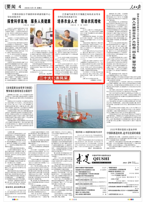 人民日報|江蘇句容天王鎮(zhèn)戴莊有機農(nóng)業(yè)專業(yè)合作社研究員趙亞夫:培養(yǎng)農(nóng)業(yè)人才 帶動農(nóng)民增收