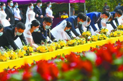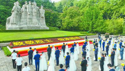 昨天是第九個烈士紀念日,南京市新婚夫婦向革命烈士獻花儀式在雨花臺烈士陵園舉行。 南京日報/紫金山新聞記者 孫中元 攝