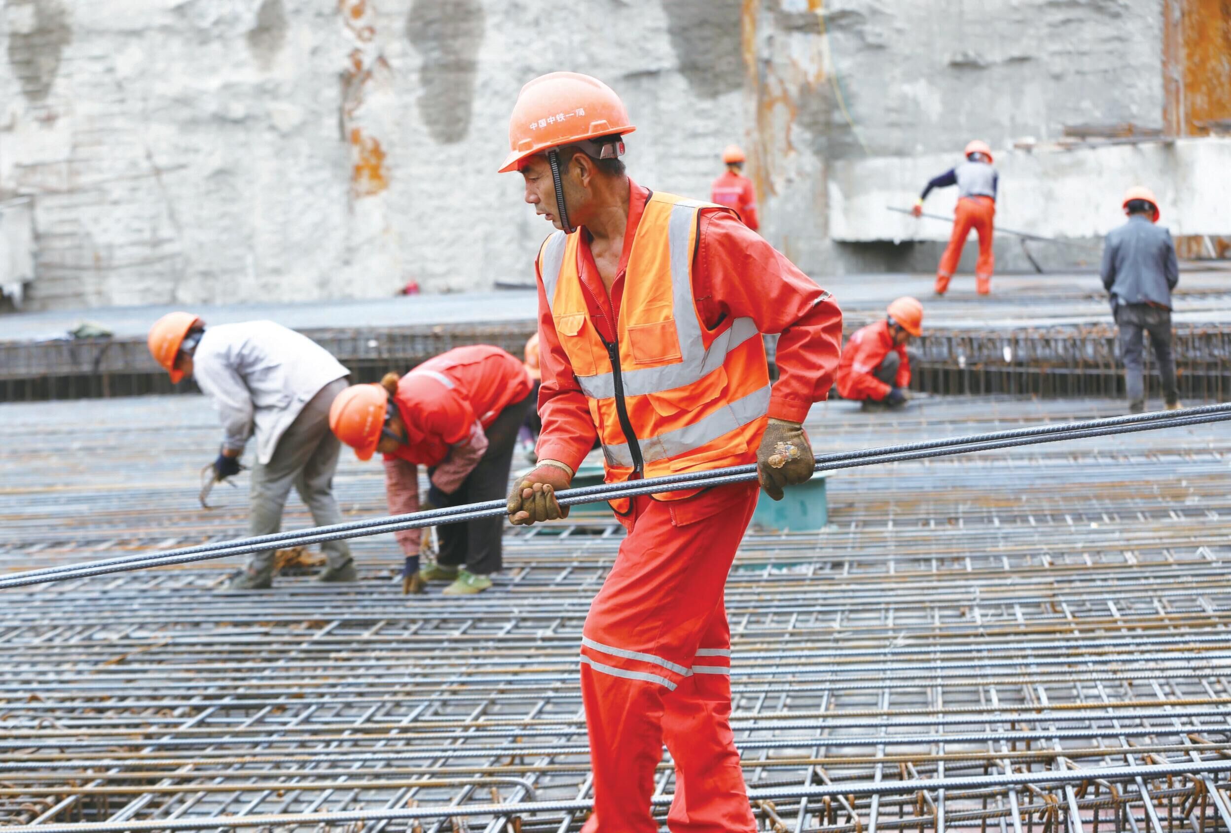 10月7日,施工人員在南通軌道交通2號線體育公園站進行底板鋼筋綁扎。 記者 尤 煉攝
