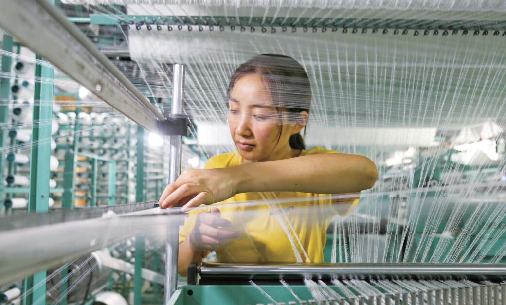 10月7日,海安市雙豐錦綸有限公司車間內(nèi),工人正在趕制訂單產(chǎn)品。 通訊員 周 強攝