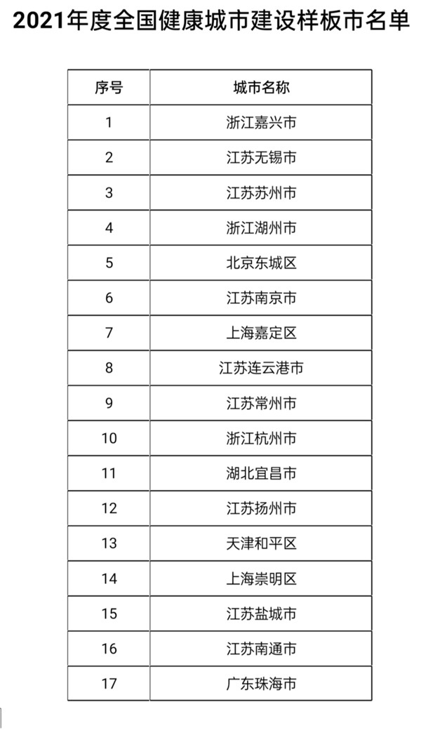 江蘇11個(gè)地市入選全國(guó)健康城市建設(shè)樣板市 數(shù)量居全國(guó)第一
