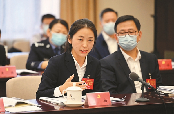 出席黨的二十大的江蘇代表圍繞二十大報(bào)告,認(rèn)真學(xué)習(xí),熱烈討論。本報(bào)記者吳勝 攝