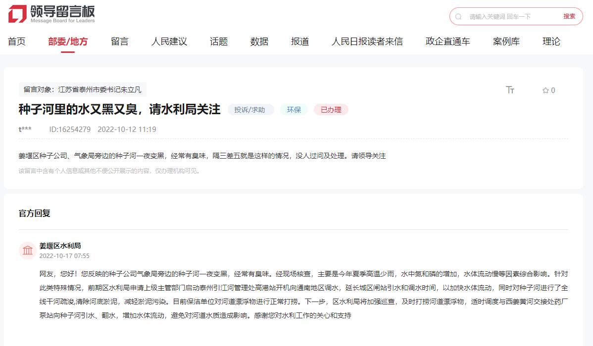 網(wǎng)友在人民網(wǎng)“領(lǐng)導(dǎo)留言板”留言獲回復(fù)
