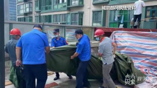 對于恒盈名居小區(qū)長期以來有大量違法建筑的情況,當(dāng)?shù)爻枪懿块T并不否認(rèn)。執(zhí)法人員表示:對于一些新增的違建,他們接到舉報后會立即組織拆除。但玻璃幕墻,裙樓外擴以及平臺上的簡易房等均屬于存量違建。