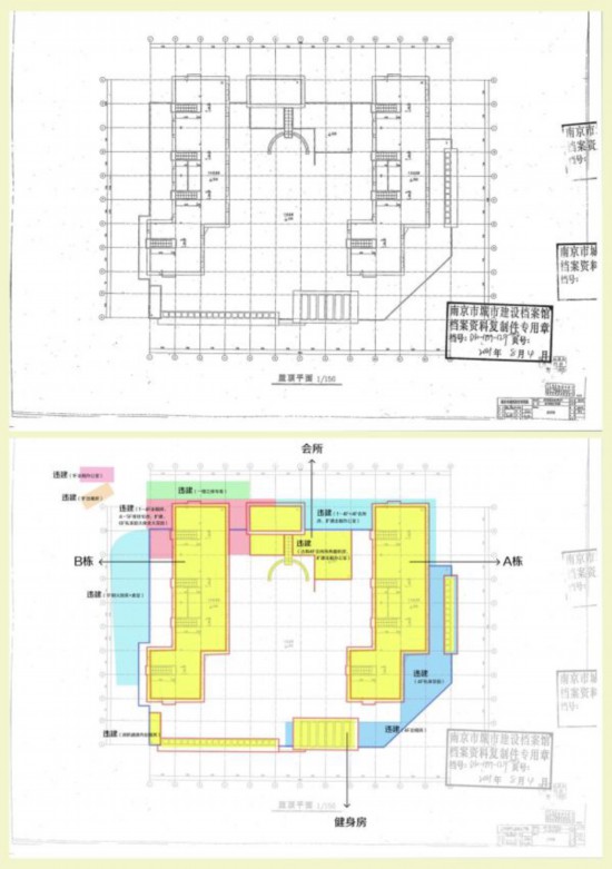 業(yè)主們調(diào)出了小區(qū)的原始規(guī)劃圖,發(fā)現(xiàn)圖紙上并無簡易房,玻璃幕墻等相關(guān)建筑。