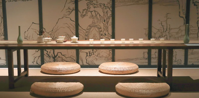 展廳中呈現(xiàn)的當代中式茶席。聶昱苗攝