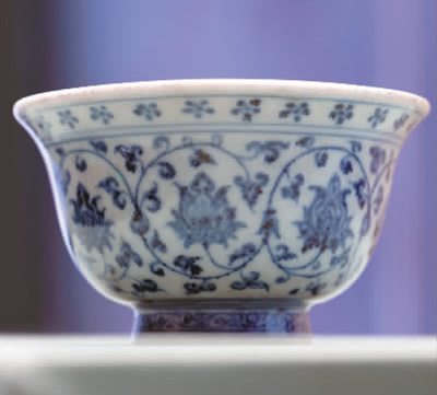 明永樂款青花纏枝蓮紋壓手杯,故宮博物院藏。動脈影攝