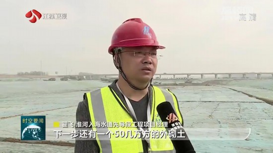 淮河入海水道先導(dǎo)段工程項(xiàng)目經(jīng)理翟飛說,下一步還有一個(gè)50幾萬方的外砌土,剩余的還有一部分護(hù)坡,我們近期已經(jīng)籌備了。