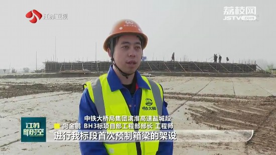 中鐵大橋局集團(tuán)濱淮高速鹽城段BH3標(biāo)項(xiàng)目部工程部部長(zhǎng)、工程師向金鵬說,計(jì)劃在12月中旬進(jìn)行我標(biāo)段首次預(yù)制箱梁的架設(shè),年前架設(shè)完成縣道255分離式立交主線橋箱梁68片,板梁架設(shè)完成312片。