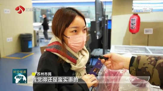 一位蘇州市民告訴記者,這次來采購了吃的喝的用的,購物車?yán)镆磺Ф鄩K錢,正好有續(xù)費(fèi)禮,能抵扣兩百多塊錢,蠻實(shí)惠的。