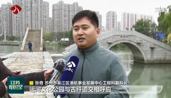蘇州市吳江區(qū)港航事業(yè)發(fā)展中心工程科副科長張奇說:“可以看到,京杭運河這一段航道明顯是向東偏移了一段距離,按照文廣部門的相關(guān)要求,對古纖道進(jìn)行了重修,隨著對面運河文化公園的完成,運河文化公園與古纖道交相呼應(yīng),相得益彰??梢哉f充分展示了京杭大運河的古貌新岸?!?/p>