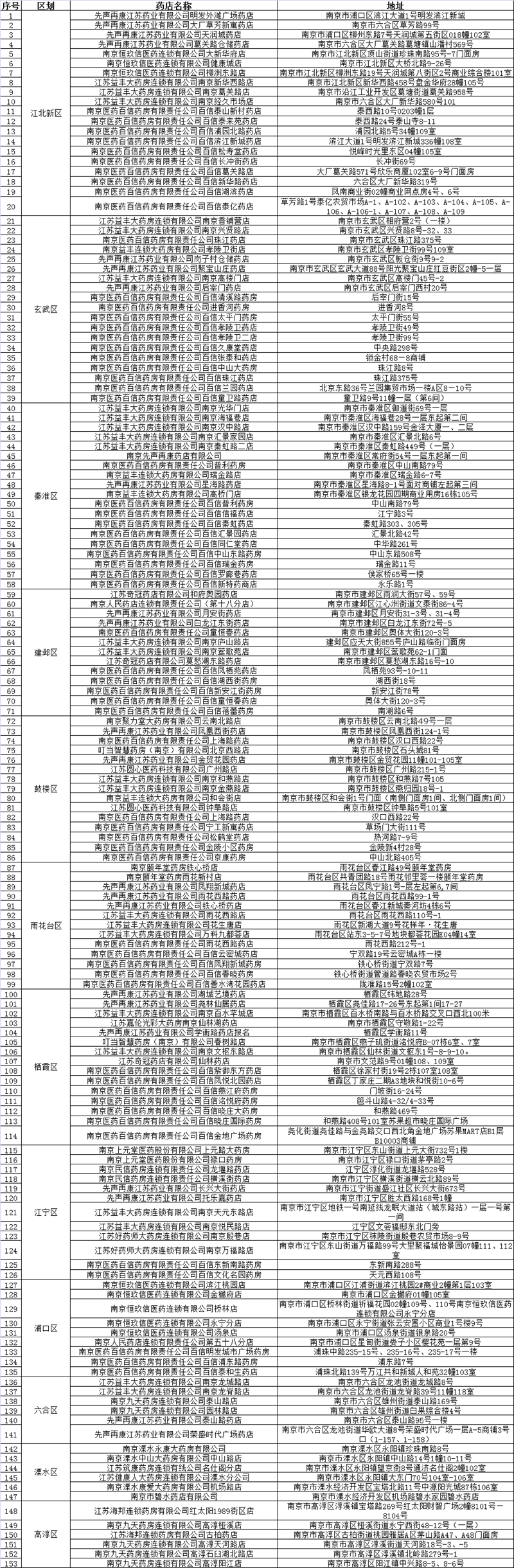 ?南京市負(fù)責(zé)銷售的藥店名單