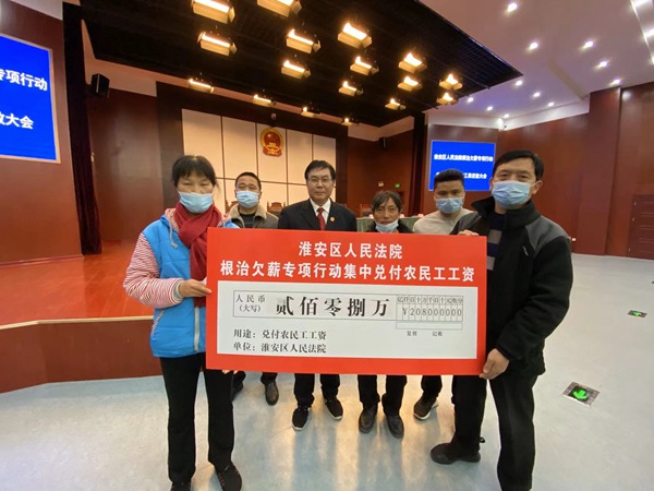 淮安市淮安區(qū)人民網(wǎng)法院根治欠薪專項行動集中兌付農(nóng)民工工資?;窗矃^(qū)委宣傳部供圖