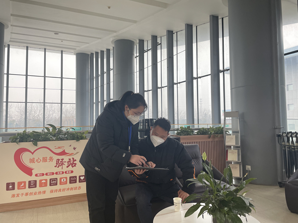 客戶經(jīng)理在愛心驛站指導(dǎo)客戶辦理煙草證。連云港煙草供圖