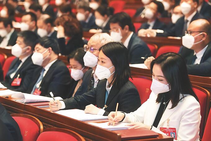 人大代表認(rèn)真聽取政府工作報(bào)告。吳勝 朱江 萬程鵬 攝