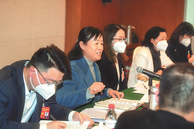 出席兩會(huì)的人大代表、政協(xié)委員們審議和討論政府工作報(bào)告。余萍 邵丹 蔣文超 萬(wàn)程鵬 攝