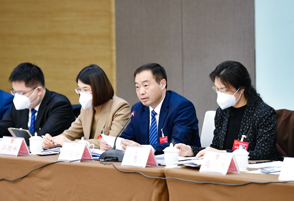 江蘇省人大代表,宿遷市泗陽(yáng)縣委副書記、縣長(zhǎng)范德珩(右二)。 ?郭帥奇攝