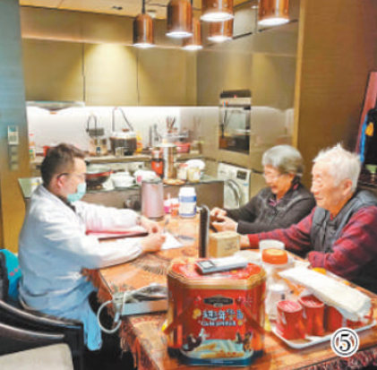 “阿姨,您千萬要控制飲食,減少碳水?dāng)z入。”臘月二十三上午,江蘇省南京市建鄴區(qū)興隆社區(qū)衛(wèi)生服務(wù)中心全科醫(yī)生孫濱(見圖⑤左一,熊曉文攝)正在通過微信了解社區(qū)居民健康狀況,并叮囑日常注意事項。每天不間斷地接聽居民電話、回復(fù)健康咨詢信息是孫濱的工作常態(tài),無論什么時候,只要居民有需求,他都立刻解答。