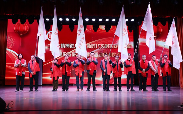 來自全縣各條戰(zhàn)線的道德模范、身邊好人、優(yōu)秀志愿服務(wù)組織、優(yōu)秀志愿者、最美行業(yè)人物代表應(yīng)邀參加啟動儀式。盱眙縣新時代文明實踐中心主任、縣委書記鄧勇為6支理論宣講志愿服務(wù)隊隊長授旗。鄧勇表示,學(xué)習(xí)貫徹黨的二十大精神宣講,要處理好大道理與小切口的關(guān)系,用心做好語言轉(zhuǎn)化,做到用百姓話講心里話,發(fā)民聲、說民事、講民理,使黨的二十大精神“活”起來、“樂”起來、“動”起來。要不斷在豐富手段和創(chuàng)新方式上用力,讓黨的二十大精神更潮、更靚、更富穿透力,也讓廣大干群在情理交融中產(chǎn)生共鳴。