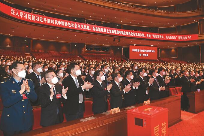 1月19日上午,江蘇大會堂燈光璀璨、氣氛熱烈。主席臺正上方懸掛著“江蘇省第十四屆人民代表大會第一次會議”會標,帷幕正中的國徽在鮮艷的紅旗映襯下熠熠生輝。正在舉行的省十四屆人大一次會議第三次全體會議,將選舉產生江蘇省出席第十四屆全國人民代表大會代表。