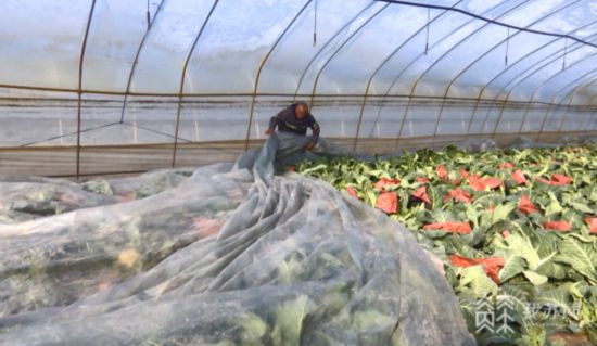 比如泰興市龍源蔬菜種植專業(yè)合作社的理事長,因為在南通市場銷售蔬菜,就把田里的活計交給了務(wù)工隊隊長。泰興市龍源蔬菜種植專業(yè)合作社務(wù)工隊隊長趙學(xué)成介紹,他們一天有三四個人進行田間管理,下午3:30~4:00把棚膜蓋上,把簾子放下來。第二天早晨8:30~9:00化了凍之后,再把油紙掀開,因為如果不把棚膜掀起來呢,溫度增高了,花菜底部就會爛。