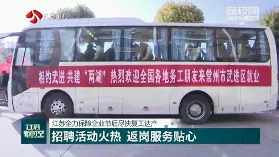 江蘇各地點對點返崗服務(wù)也在持續(xù)開展。日前,連云港市灌南縣包車接來了53名安徽銅陵的務(wù)工人員;來自甘肅、陜西、內(nèi)蒙等地的務(wù)工人員陸續(xù)抵達(dá)常州,武進就業(yè)驛站還提供了37間宿舍,可同時容納200多人住宿,務(wù)工人員可暫時在此落腳,隨后前往企業(yè)工作。