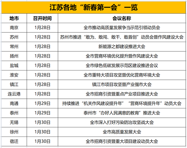 不止徐州,在江蘇各地的新春第一會上,“項(xiàng)目建設(shè)”“營商環(huán)境”同樣是高頻詞。